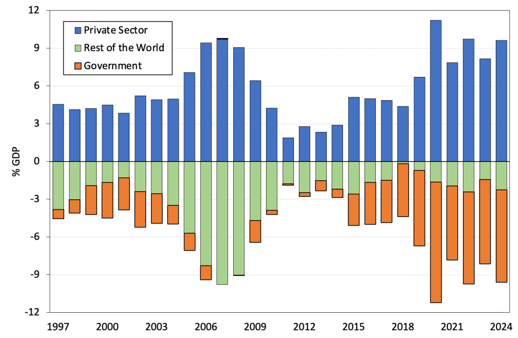 Figure 1. Sectoral balances in the US, 1960-2024